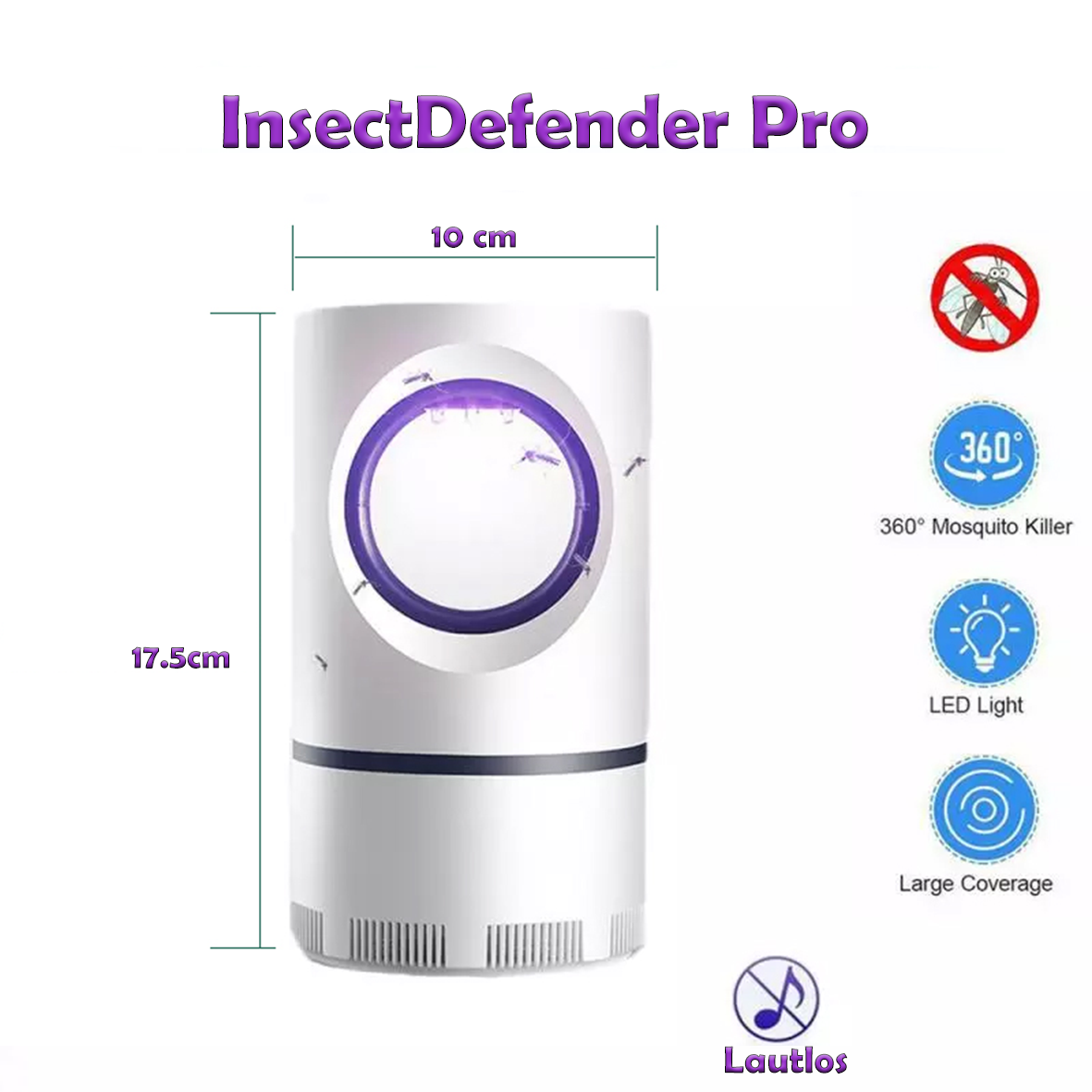 Mit der InsectDefender Pro™ Insektenlampe haben Sie einen effektiven Schutz vor Fliegen und Mücken. Schaffen Sie eine angenehme Umgebung und genießen Sie Ihre Zeit ohne störende Insekten!