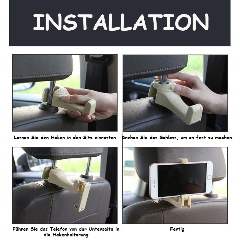 ✔️  Unterhaltung für Fahrgäste  – Durch einen schnellen Handgriff kann der Haken zu einer Handyhalterung umfunktioniert werden.